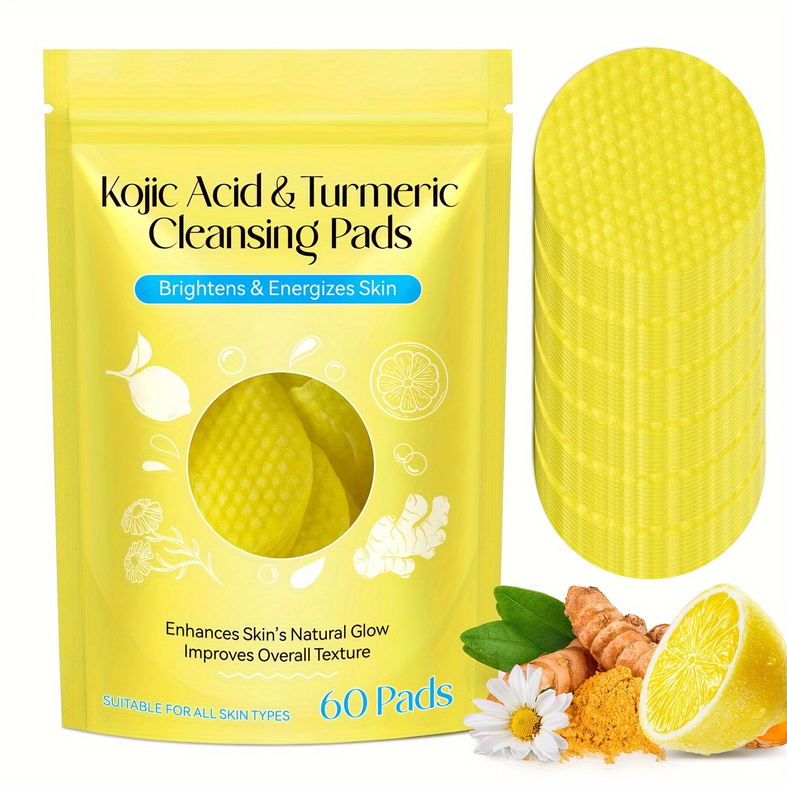 60PCS Turmeric Exfoliating Pads with Kojic Acid - Balance Skin Oil and Water, Remove Dead Skin Cells and Excess Keratin, Gentle and Effective Skin Renewal for Smooth and Radiant Complexion